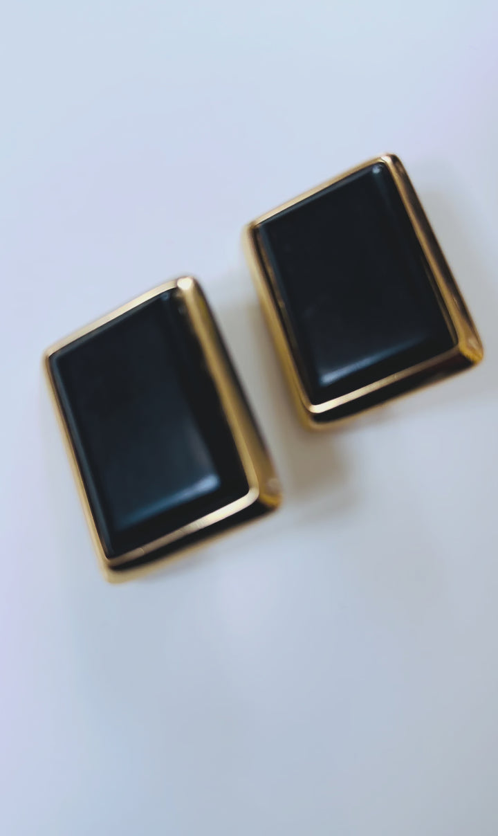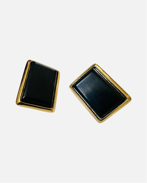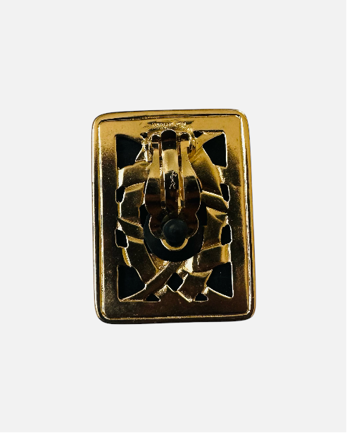 Boucles d’oreilles YSL vintage à clips Rectangle - noir et doré