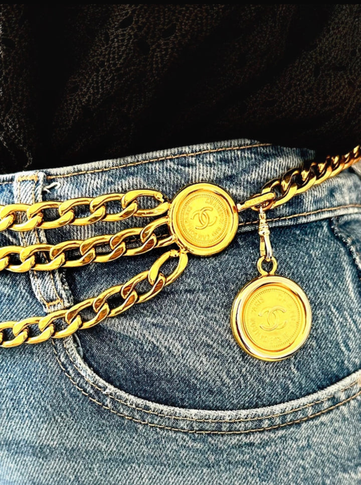 Ceinture Chanel vintage 1984 - Triple chaîne médaillons