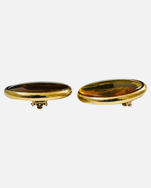 Boucles d’Oreilles YSL - Verre Ambré 1980s