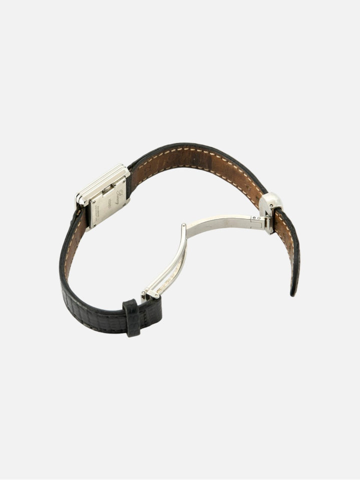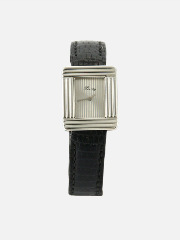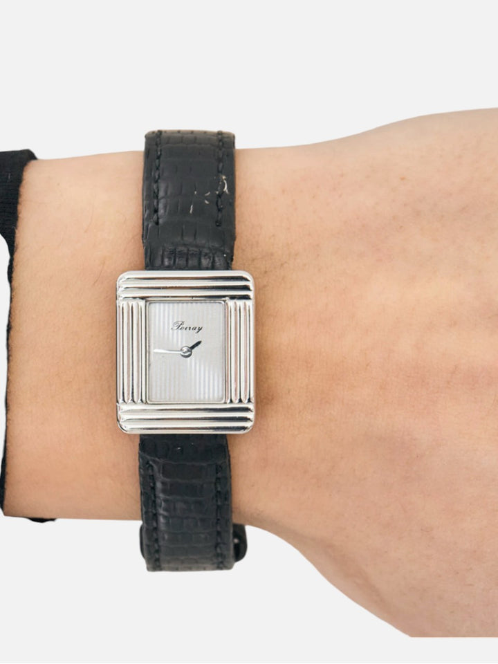 Ma Première Mini de Poiray incarne le raffinement discret du style parisien. Son boîtier acier aux lignes Art-Déco, son bracelet cuir noir sobre, et son mouvement quartz fiable.
