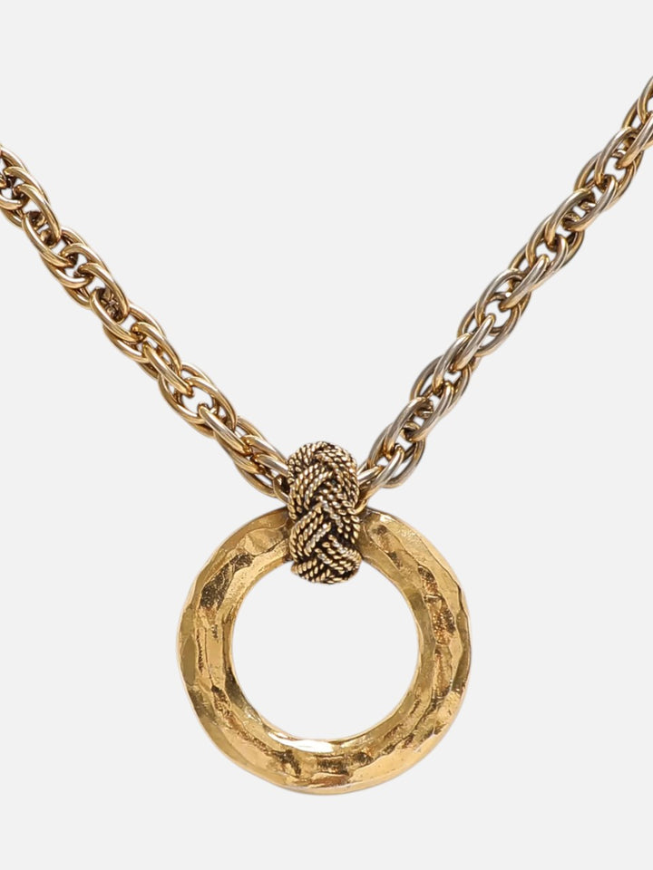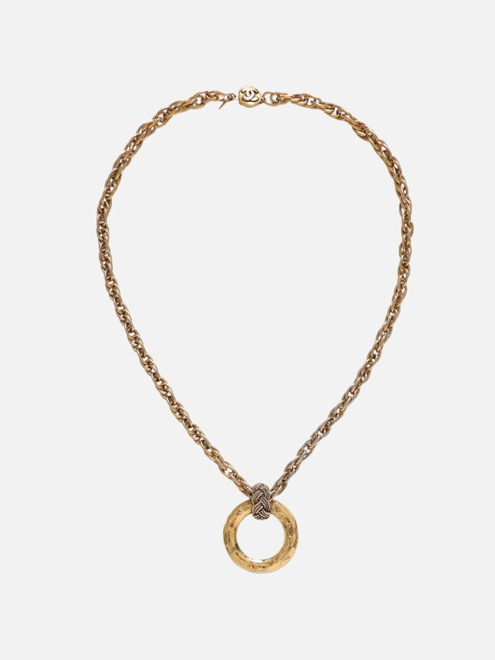 Ce sautoir est issu de la collection Chanel des années 1980 rare et reflète l’opulence et l’audace de l’ère Karl Lagerfeld, sublimée par la créativité de Victoire de Castellane. Conçu en métal doré, il présente une chaîne à boucles imbriquées et un pendentif circulaire martelé, symbole de la richesse des bijoux fantaisie de la Maison à cette époque.